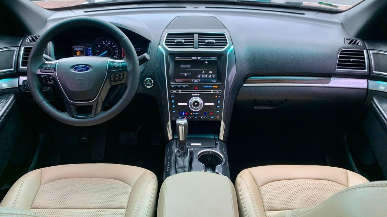 Ford Explorer sx cuối 2015 lô nhập khẩu Mỹ đầu tiên về VN. Màu đen, nội thất kem, odo 8 vạn km.