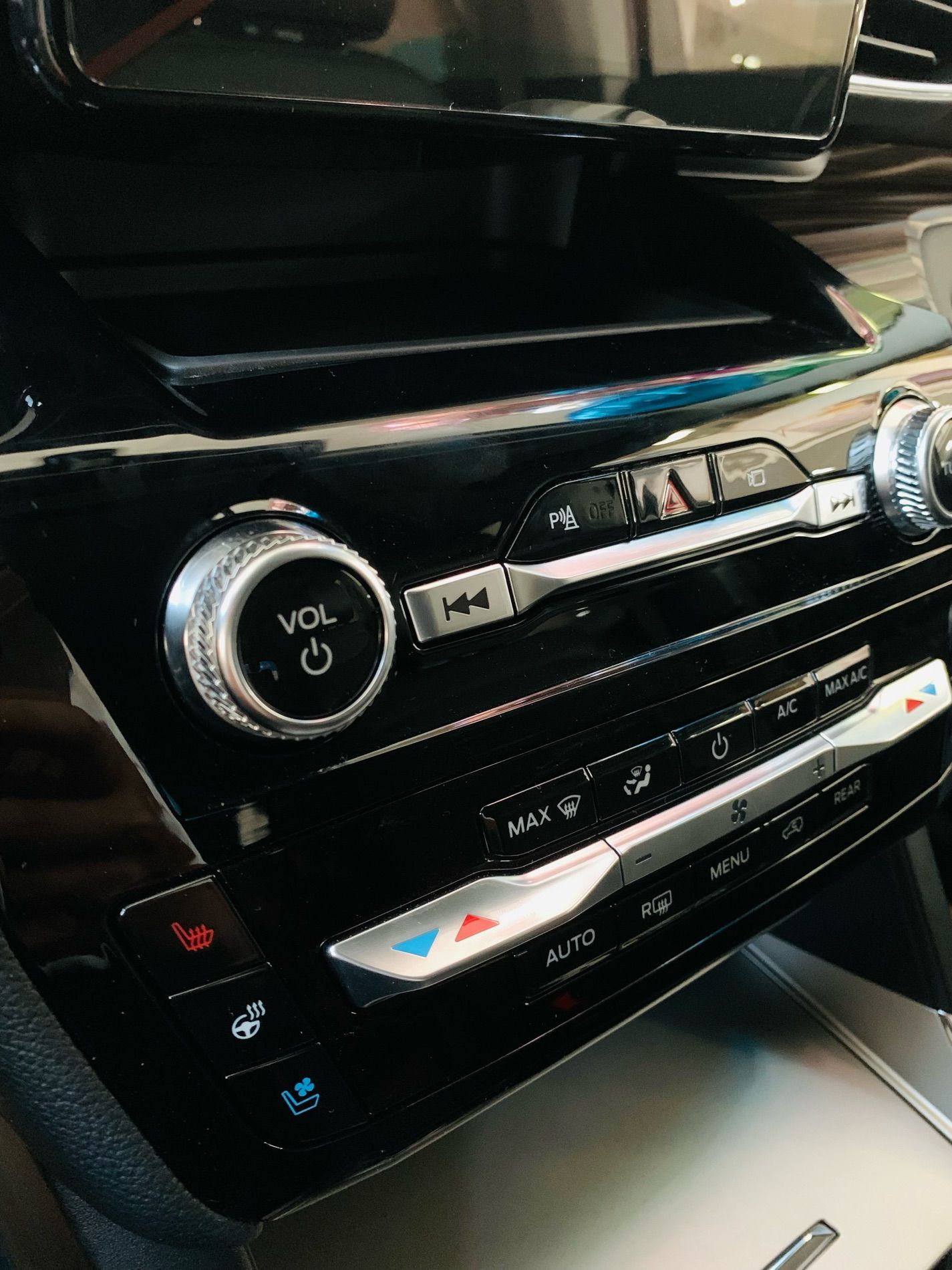 Xe 7 chỗ hiện đại với màn hình giải trí trước sau, cần số điện tử núm xoay, vô vàn thiết bị giải trí trên xe.