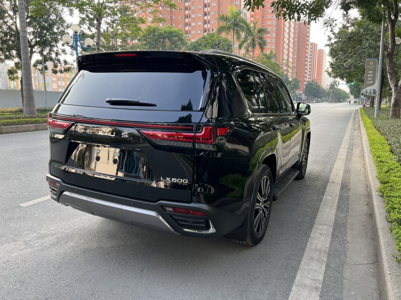 Lexus LX600 nhập mới 100%. Xe màu đen, nội thất nâu da bò.
