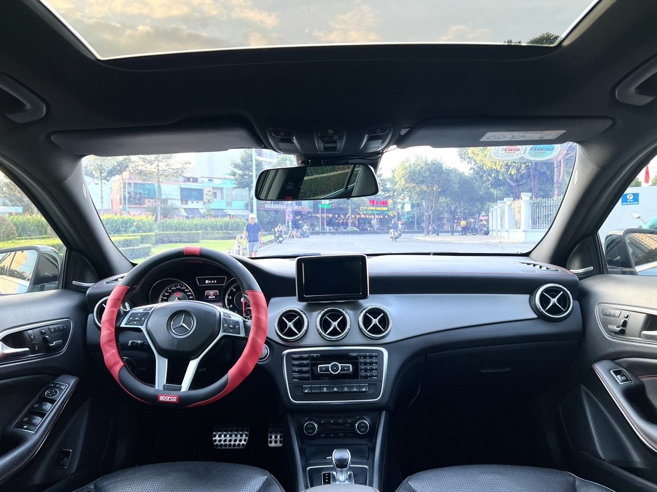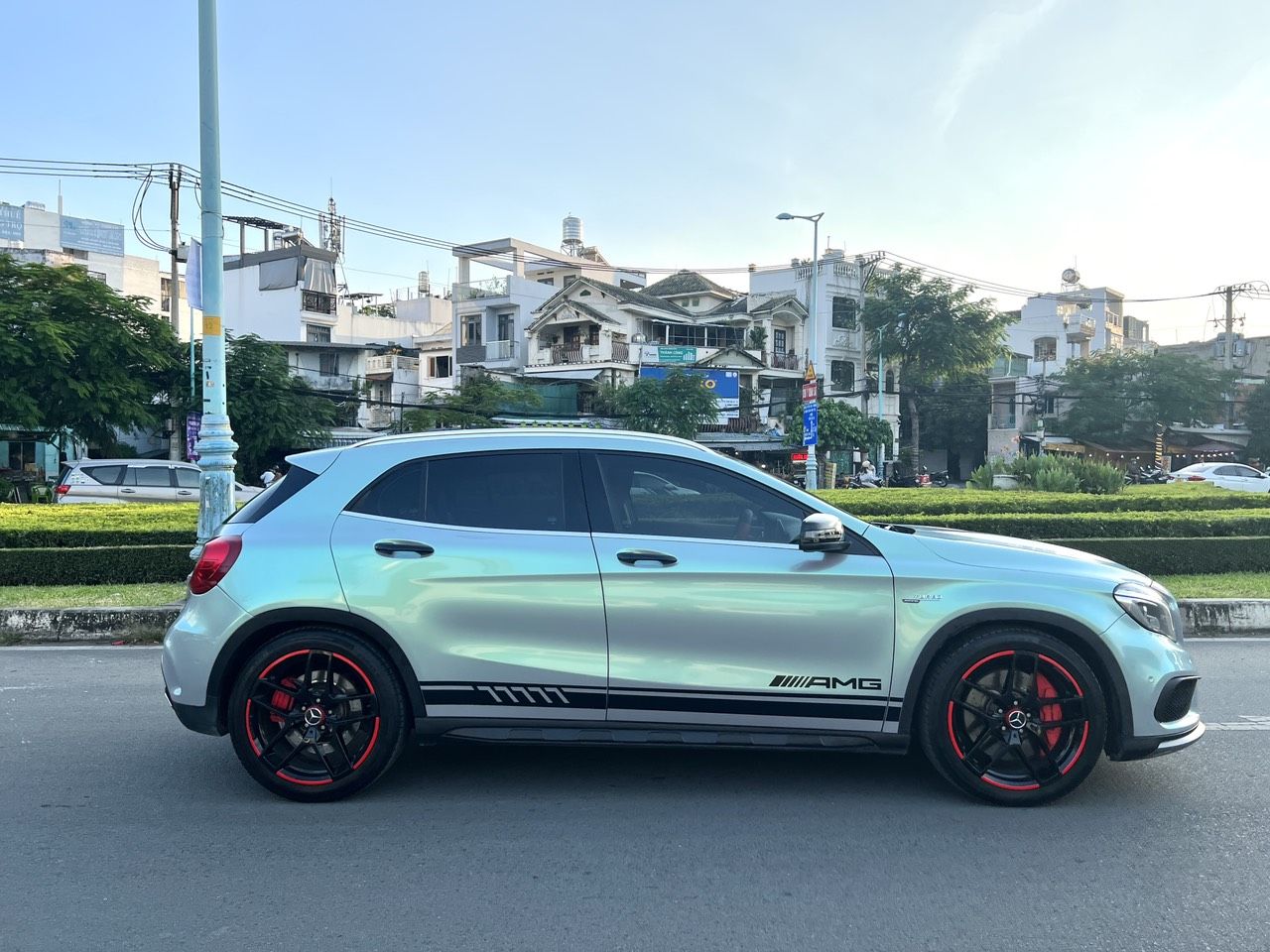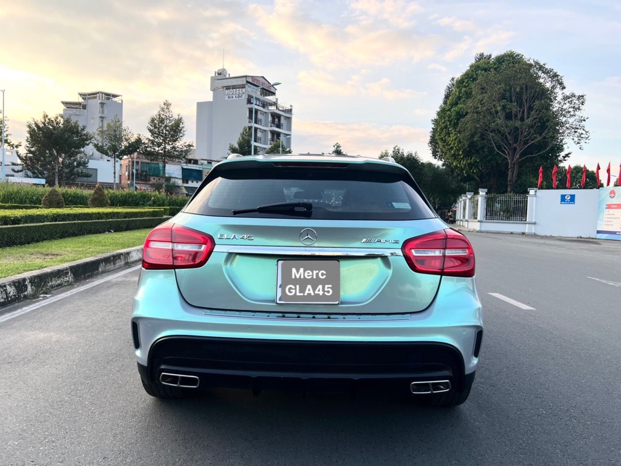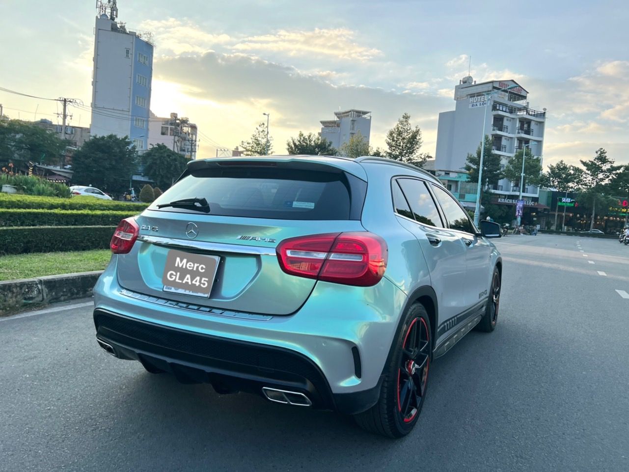 Merc GLA 45 AMG nhập Mỹ 2015 màu đẹp, bản full cao cấp nhất đủ đồ chơi cửa sổ trời, nội thất đẹp, loa bom DVD ve nệm da cao cấp. Nhà mua mới ít đi chạy đúng 78 ngàn km, còn rất mới. Xe bao chạy cách âm, gầm máy êm ru, đồng sơn máy còn zin mới 90%.