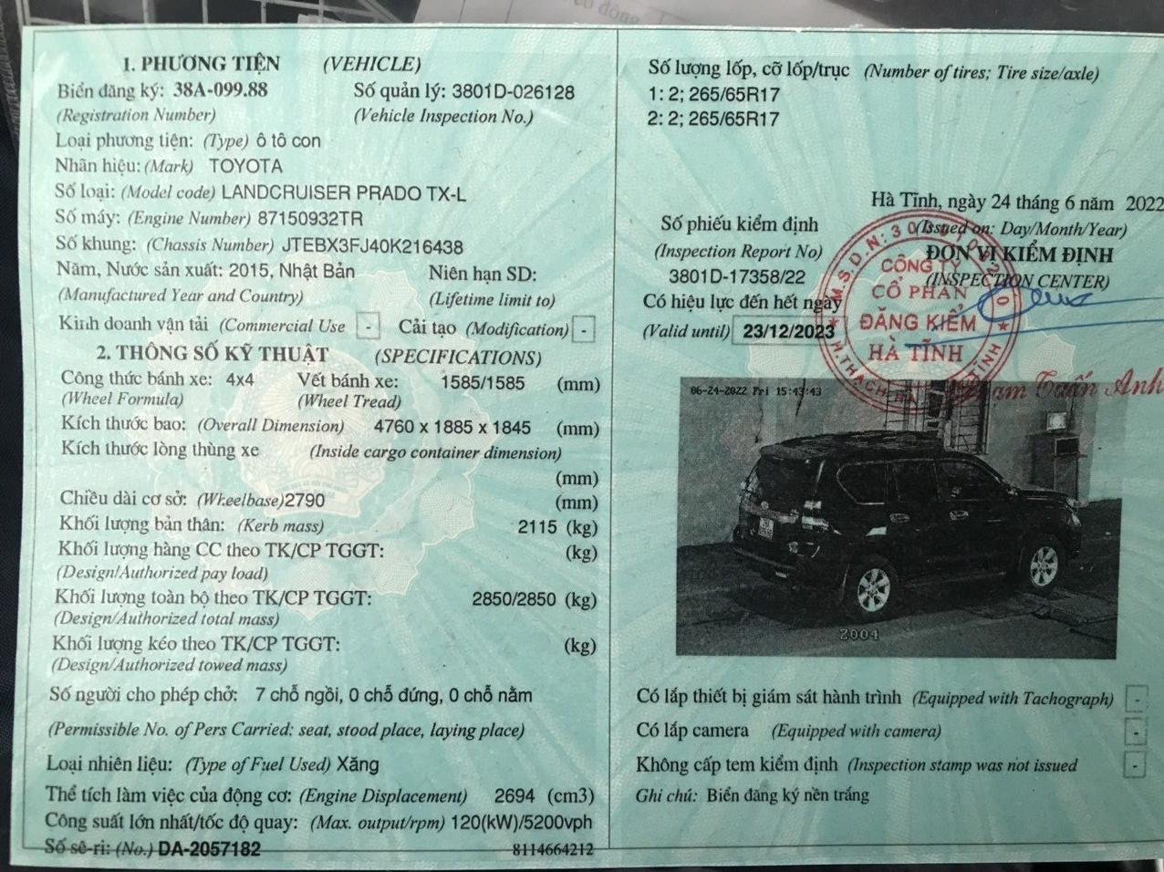 Mình cần bán xe Toyota Lancruser Prado màu xanh rêu đời 2015 với giá cực tốt.