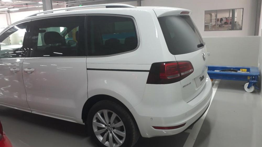 Volkswagen Sharan nổi bật với phần đầu xe bắt mắt, bộ đèn pha sắt sảo trên Sharan là sự kết hợp hoàn hảo giữa thấu kính thời trang và cháo phản chiếu đa góc sử dụng bóng Halogen. Nối liền bộ đèn pha là lưới tản nhiệt tinh tế với 2 thanh mạ chrome sáng bóng “thon thả”. Sử dụng bộ mâm có đường kính 17 inches, Sharan được trang bị kèm với bộ lốp 225/50R17. Volkswagen Sharan 2018 có kích thước tổng thể Dài x Rộng x Cao lần lượt là 4952 x 1904 x 1720 (mm). Gương chiếu hậu trên Sharan 2018 được tích hợp đèn báo rẽ cùng chức năng cảnh báo điểm mù cũng được trang bị sẵn sàng. Sharan 2018 sử dụng 2 cửa trượt điện cho hàng ghế sau, giúp việc ra vào được dễn dàng. Cửa hậu bấm nút đóng mở chức năng chống kẹt. Đuôi xe được trang bị đèn hậu tích hợp nhiều đường nét uốn lượn tạo sự hấp dẫn ánh nhìn.